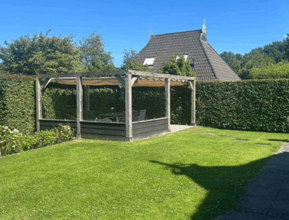 Een groot voordeel van recreëren op It Wiid is dat elke woning aan open vaarwater ligt, met een eigen aanlegsteiger direct aan de tuin. U vaart zó het Nationaal Park De Alde Feanen in, terwijl de knusse terrassen van de restaurants in het dorp ook binnen handbereik zijn. Daarnaast beschikt deze woning over een royale overkapping in de tuin met glazen wanden, beschut door een groene heg. Hierdoor zit u heerlijk uit de wind, perfect om het buitenseizoen te verlengen en op frisse dagen toch comfortabel buiten te genieten.