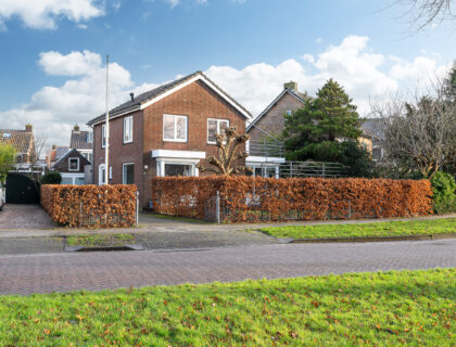 De lange oprit, ruime vrijstaande garage met vliering en een apart fietsenhok zorgen voor voldoende parkeerruimte en opbergmogelijkheden. De garage is recent voorzien van een nieuw dak. Daarnaast is via de oprit ook de achterzijde van de woning bereikbaar, waardoor je achterom bij de bijkeuken en de tuin kunt komen.